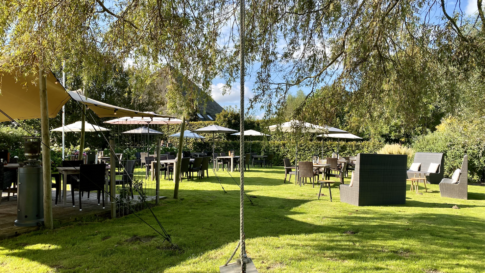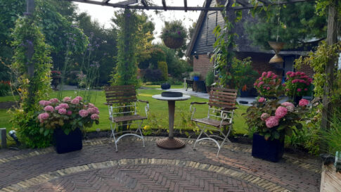 Grote weelderige (thee)tuin met galerie in oude stolp. Opp. 5.000 m2.