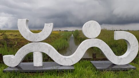 Een grote beeldentuin met verrassende hoekjes en zitjes.