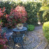 In onze tuin staan enkele bijzondere bomen, zoals de tulpenboom, slaapboom en mispel. Via verschillende paadjes wandelt u langs verrassende zithoekjes en gevarieerde plantengroepen. Bij het prieel vindt u een vijver met goudvissen. Onze tuin trekt veel verschillende vogelsoorten en een grote variatie aan insecten aan. In 2025 hebben we bovendien een broeikas geplaatst, waarin we groente, fruit en jonge plantjes gaan kweken.