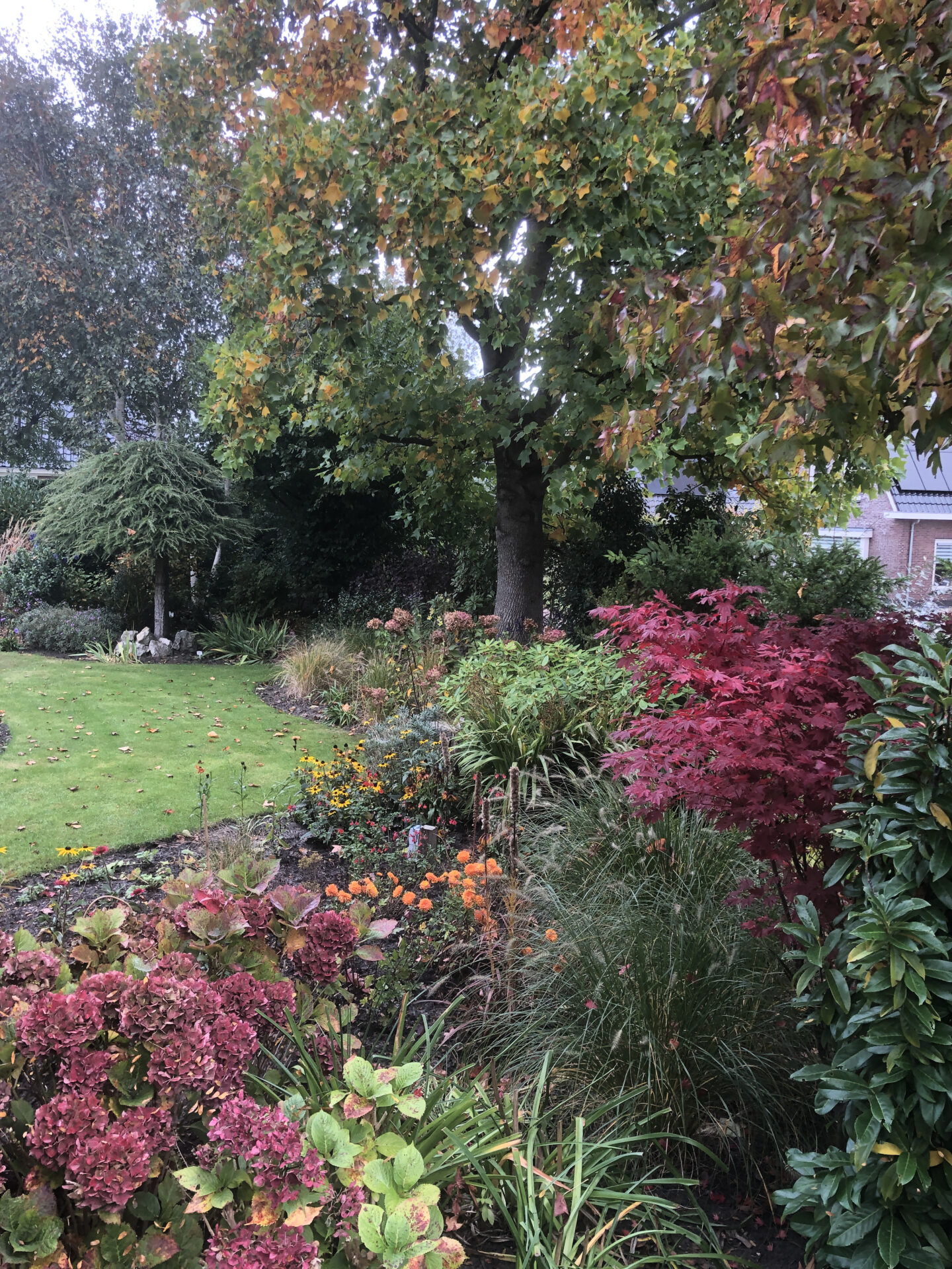 De tuin aan de Nes 14 is vanaf 1985 aangelegd en door de jaren heen steeds verder ontwikkeld. De vorige bewoners legden de basis voor een sfeervolle siertuin met vele bomen, struiken en gazons. Sinds wij hier in 2022 wonen, hebben we enkele bomen en struiken verwijderd, waardoor er meer licht in de tuin valt en veel planten zich beter kunnen ontwikkelen. Ook hebben we veel nieuwe vaste planten toegevoegd. Vooral de borders zijn uitgebreid met diverse soorten die in alle seizoenen voor afwisselende bloei zorgen.