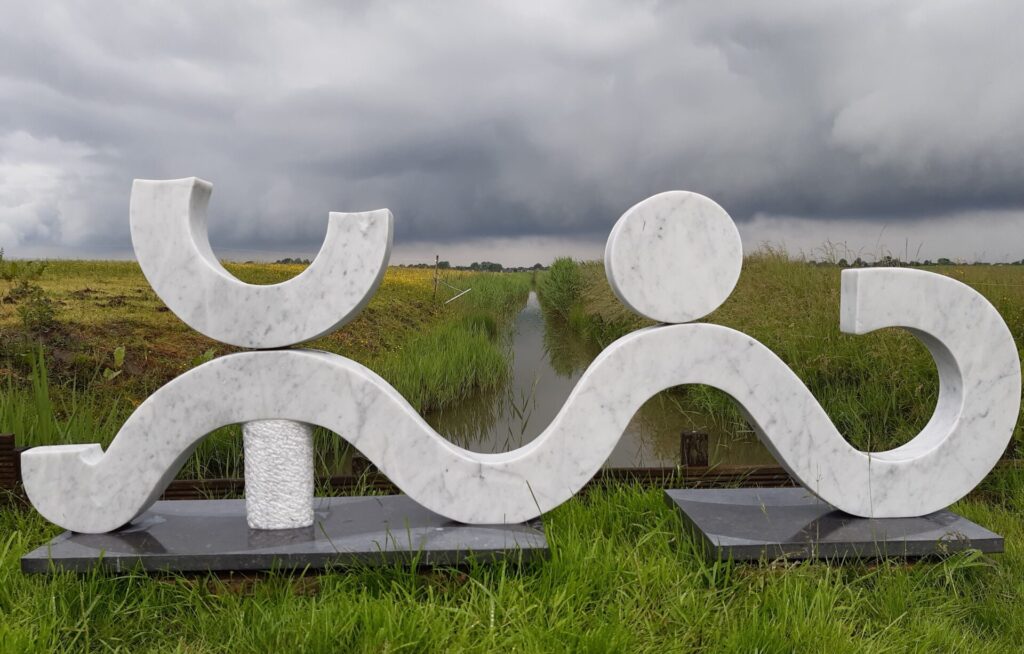 Als je bij Sculptuur inZicht in Lutjewinkel aankomt, loop je direct tegen de voorraad Italiaans marmer aan. Ageeth vertelt graag hoe van een dergelijk stuk marmer een beeld wordt gemaakt. Dat Italië een inspiratie bron is, wordt dan duidelijk.